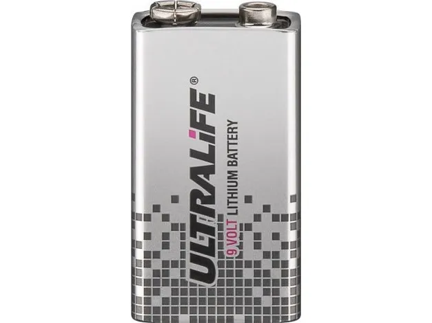 lithium batteri, 9 V Ultralife 9 V-batterier U9VL-J-P har en meget lav selvafladning og en meget lang holdbarhed. Disse lithiumbatterier holder ca. 5 gange længere end konventionelle 9 V alkalinebatterier og 10 gange længere end zink-kul-batterier. 9 V-batterierne er særligt velegnede til svært tilgængelige røgdetektorer og sikkerhedssystemer. 6F22-batteriet til røgdetektorer er beregnet til en energiforsyning i op til 3-5 år, for ioniseringsrøgdetektorer endda i op til 10 år. Velegnet til røgdetektorer, medicinsk udstyr, musik, lyd og industrielle produkter 9 V-batteriet har en meget høj energitæthed og en lav vægt.