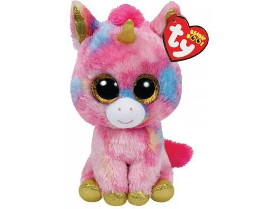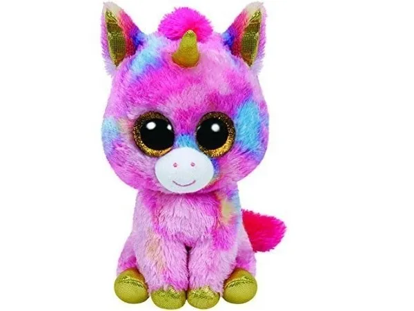 Magical dreams and wishes might make you think of me. I’m a beautiful unicorn with eyes all sparkly. I’m Fantasia the Beanie Boo, my hooves are gold, my horn is too. Pink, blue and yellow with a touch of white, I really am a wonderful unicorn, a truly colorful sight.