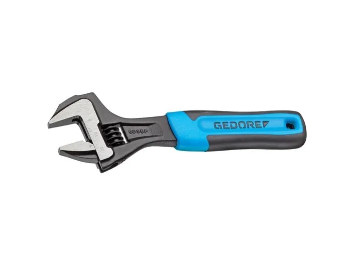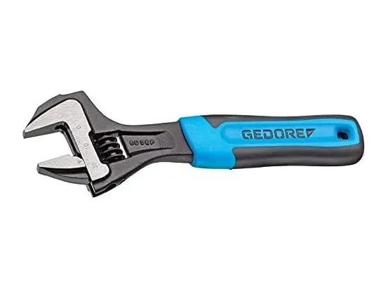 Acc. to ISO 6787, jaw set at 15°. Swedish pattern, roller with left-hand thread. With scale. The protected mechanism and additional striking face allow light blows to be applied without impairing the function of the wrench. Comfort 2-component handle (versions JC and JP) for fatigue-free working. Grip recess ensures secure hold - even with greasy hands. Hanging hole. Chrome-vanadium steel. Version C nickel and chrome-plated, head ground. Version P manganese phosphated, head ground. Version JP and JC complete with plastic handle.