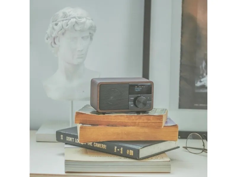 Sangean Genuine Mini DAB+-radio Genuine MiniDAB er den mest charmerende radio, du nogensinde har set - i DAB+-version! Undervurderer ikke hans kræfter! Denne DAB+ / FM-modtager i klassisk look har en højtaler, der overrasker dig, suppleret med det akustisk afstemte trækabinet. Hør din yndlingsradiostation i denne lille version af din almindelige bordradio.