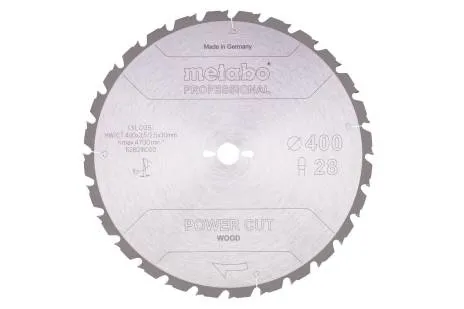 Metabo rundsavsklinge HW/CT 400 Rundsavsklinge HW/CT 400 x 30 x 3,5 /,5, Tandantal 28, fladtand har skråkant, spånvinkel 10°. Til grove og fine tilskæringer ved hurtig fremføring og lavt energibehov Gode skæreresultater ved længdesnit i massivt træ. Til dels anvendelig til byggetræ med søm og betonrester Ved overfladebehandlet træ eller andre sammensatte stoffer er kun grov skærekvalitet mulig.