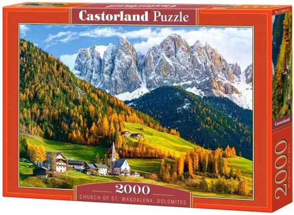 Castorland Church of St. Magdalena, Dolomites 2000 pcs. Number of puzzle pieces: 2000 pc(s). Genre: Landscape, Recommended age (min): 9 yr(s). Width: 920 mm