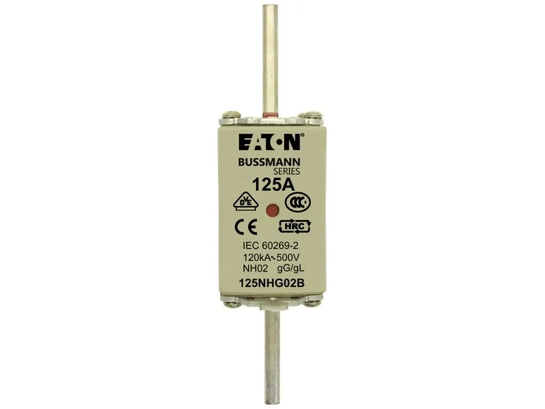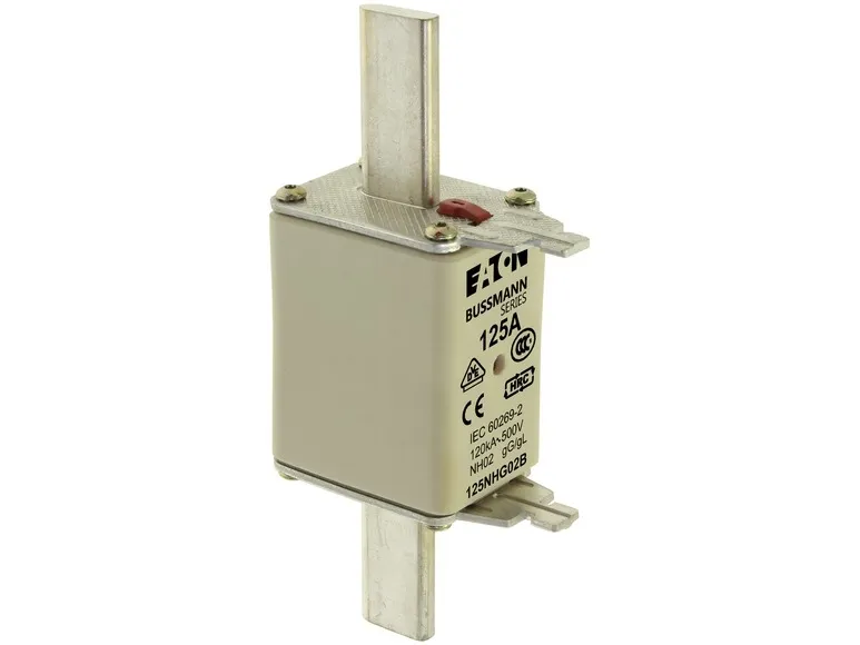 Sikringsindsats 125NHG02B DobbeltvisningssystemBussmanns patenterede Dualvisning giver en klar visning og sørger for en yderst pålidelig lokal og remote* visning. Det reducerer tid og omkostninger til udskiftning af sikringsindsatser.* Ved hjælp af en valgfri mikrokontaktLavt tab af strømBussmanns »Low Watts Loss« (lavt tab af strøm) sikkerhedsoperationer reducerer de generelle driftsomkostninger og CO2-emissioner ved at mindske energiforbruget og varmeoverførslen til apparaterne.Er i overensstemmelse med lovgivningen i hele verdenBussmanns NH-sikringsindsatser er testet og er i overensstemmelse med IEC 60269-1 og 2, din 43620, VDE, CE, CCC (Kina), RoHS og kan genbruges, for at sikre global accept.