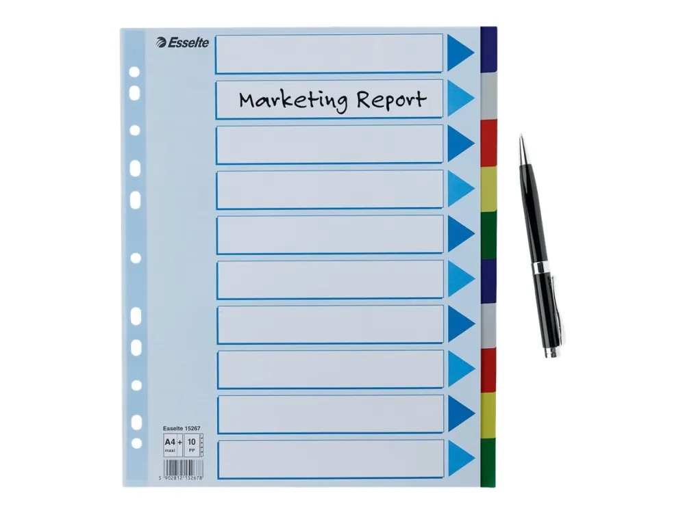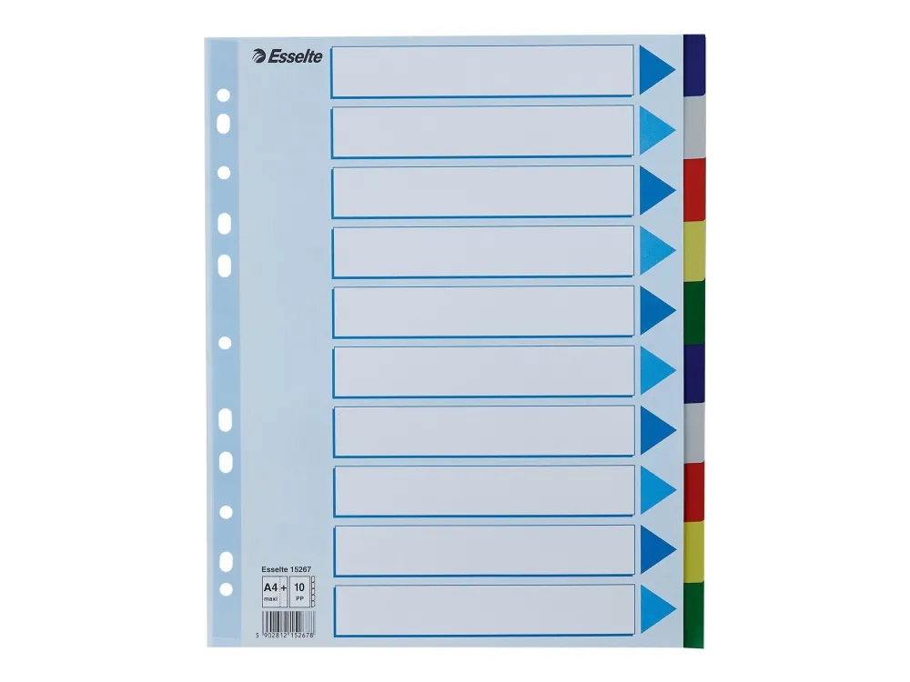 Esselte - inndeler - 10 deler - for A4 Maxi - med fliker - multifarge