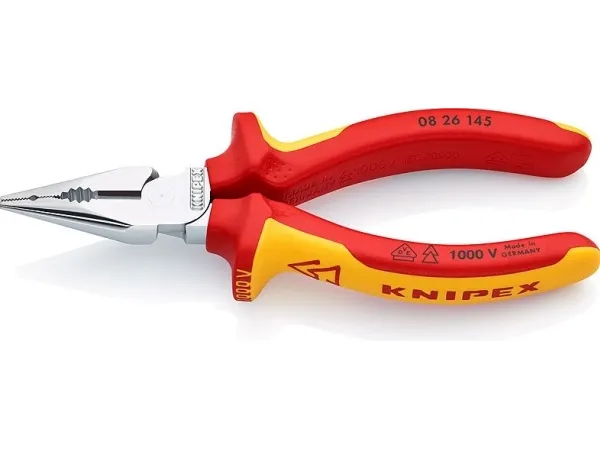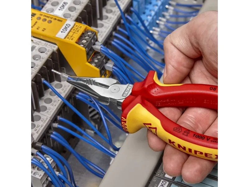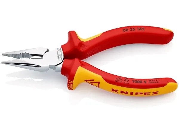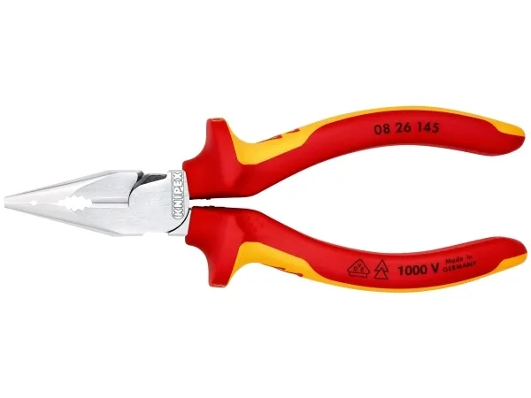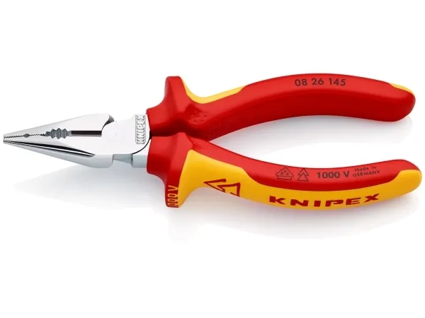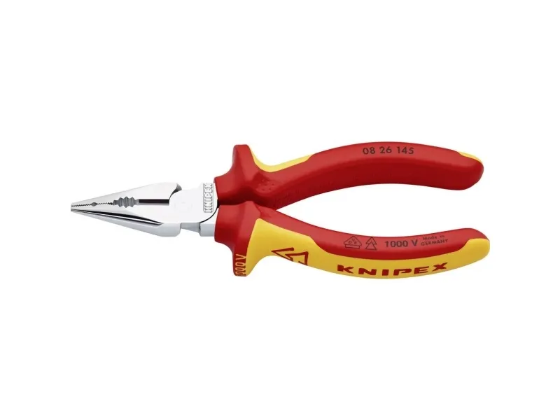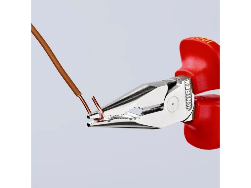 08 26 145 Spids kombitang nem skæring takket være kraftled med høj udveksling. særligt handy: ideel til arbejde på vanskeligt tilgængelige arbejdsområder takket være slank hovedform med spidst indsnævrende bakker (særdeles sikker mod uddrejning). Gribeflade ensidig konveks - for sikkert greb om flade dele. Den sikre og alsidige spidskombitang til undervejs. Med skær til blød, mellemhård og hård tråd. Skær yderligere induktivt hærdede, skærhårdhed ca. 61 HRC. Lange holdbarhed og stabile spidser. Den fræsede not i gribeområdet gør det muligt at holde og trække små arbejdsemner som søm, stikben og bolte.