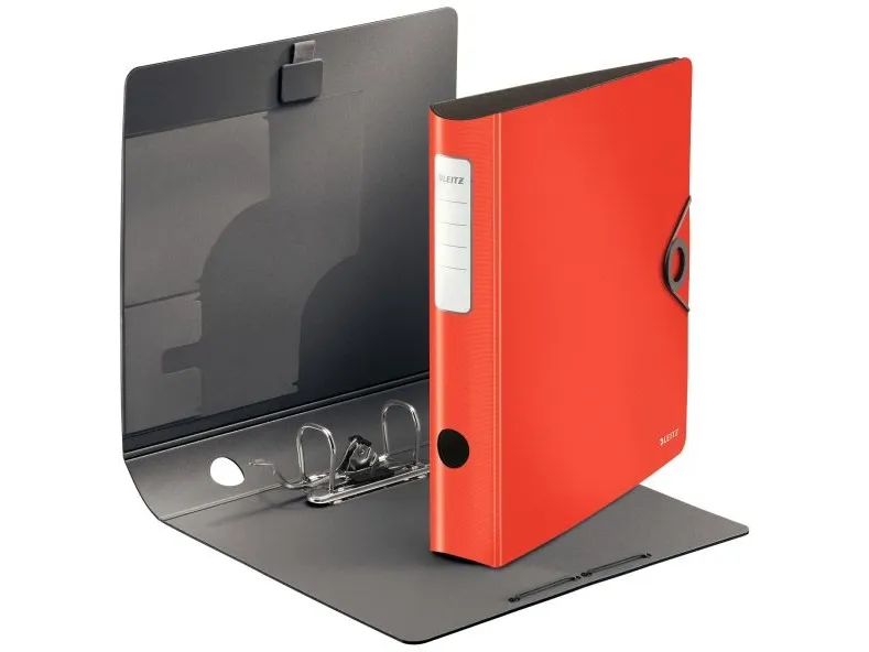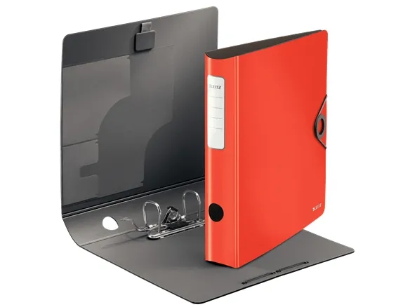 Innovative lever arch file. Lightweight material and ergonomic design for easy handling of documents on the move and in the office. 180° mechanism for 50% wider opening and 20% faster filing.
