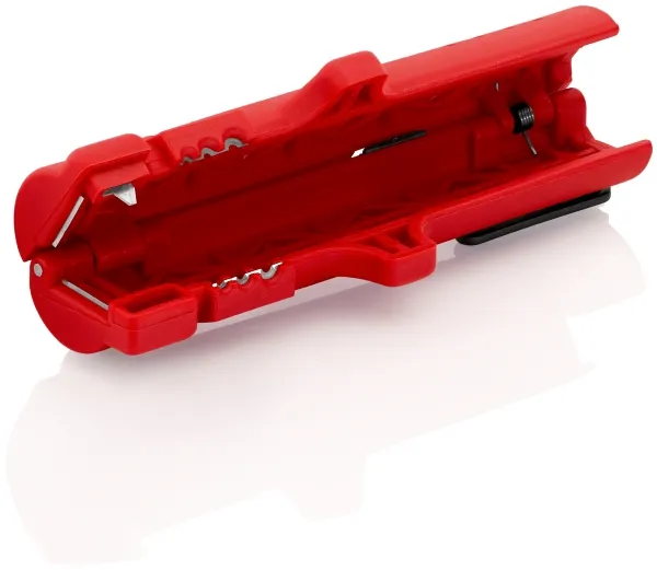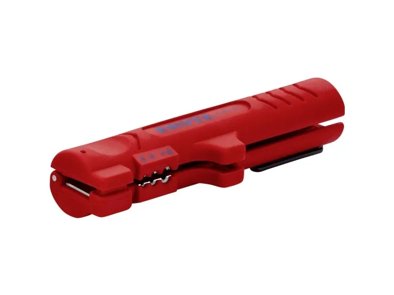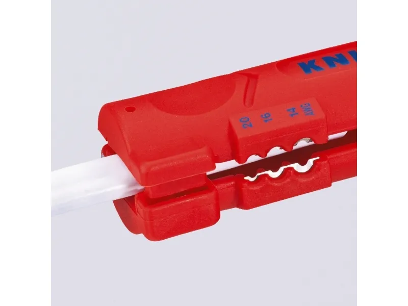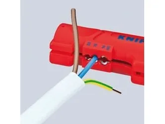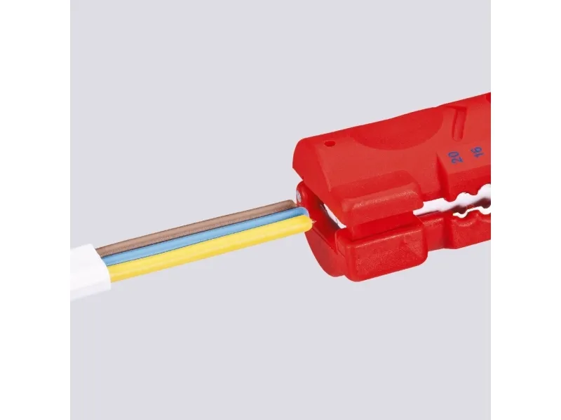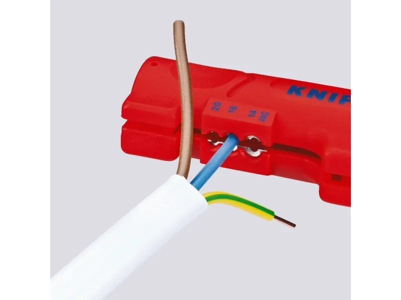 Til flade kabler med en bredde på op til 12 mm. Egner sig til at afkappe og afisolere alle almindelige rund- og fugtrumskabler fra Ø 4,0 til 13,0 mm (fx NYM-kabler 3 x 1,5 mm² til 5 x 2,5 mm²). Afisoleringsudstyr for tværsnit 0,8 / 1,5 / 2,5 mm² (AWG 20 / 16 / 14). Med åbningsfjeder og pal. Til arbejder på trange og vanskeligt tilgængelige arbejdsområder. Også til brug i forgrenings- eller fordelerdåser.