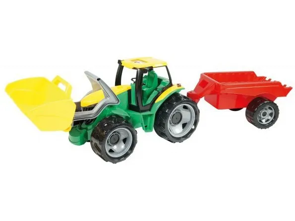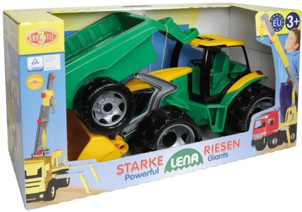 Lena GIGA TRUCKS Tractor with shovel & trailer, Traktor, 3 år, Sort, Grønn, Grå, Gult