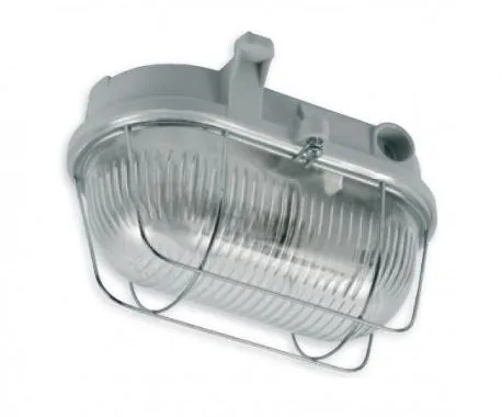 Klassisk skotlampe i gråt kunststofhus med glas og forzinket metalgitter for 60w glødepære eller sparepære. Ekskl. lyskilde