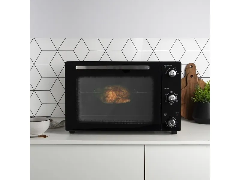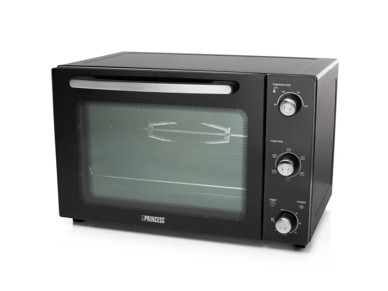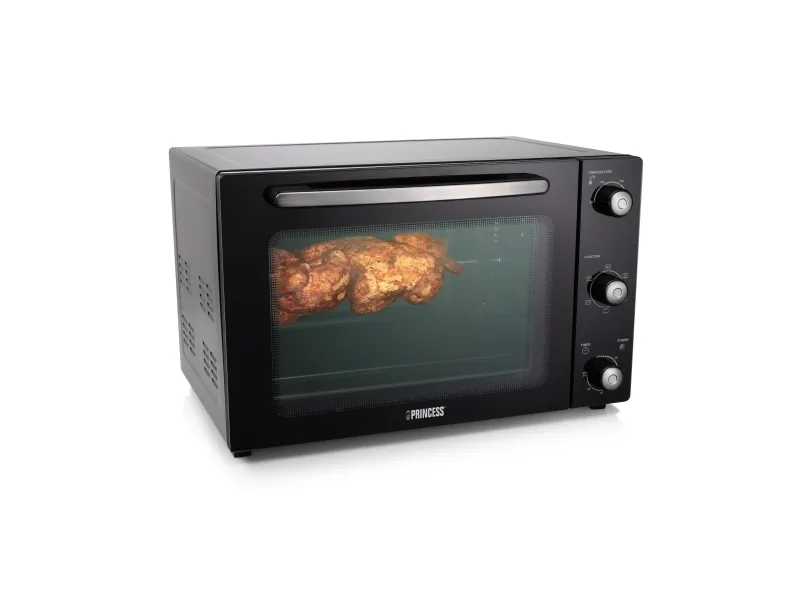 Six settings, including rotisserie The luxurious Princess Convection Oven not only has an upper and lower convection heating, it also has two special rotisserie settings. This way, you can prepare the best grilled chicken at home. You receive a free rotisserie spit, so you can fill your home with the delicious scent of grilled chicken.