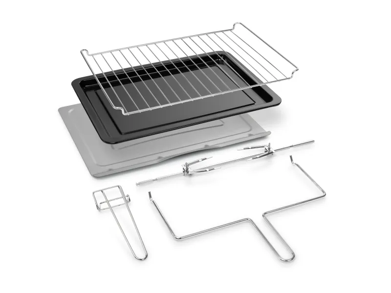What’s in the box: Princess Convection Oven, grill rack, oven tray, rotisserie spit, handle, spit handle, instruction manual