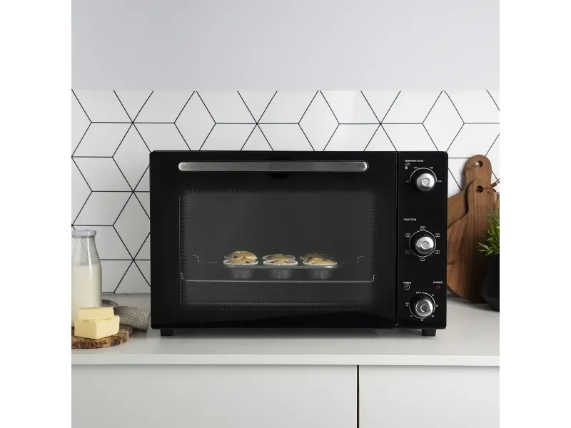 Bake, grill and roast using the Princess 112756 Convection Oven. The oven has six settings, including a defrost and rotisserie function. Next to this, the oven is easy to clean since the whole inner walls have a nonstick coating. Making it the perfect oven for home bakers.