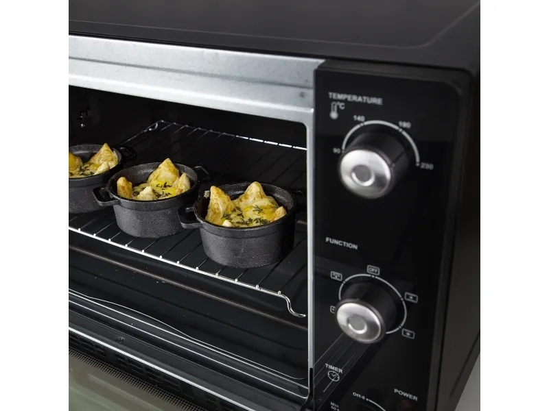 Adjustable timer up to 60 minutes Set the convenient timer anywhere between 1 and 60 minutes, you will hear a sound signal when the time has passed. Never leave your food in the oven for too long with burned edges as a result. Thanks to the indoor light you can keep an eye on the baking process.
