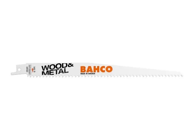 - The wood and metal blade family is designed for demanding cutting in wood with embedded nails but can also be used for thick metal materials - Virtually unbreakable Sandflex® bi-metal blade for all materials and type of cut - HSS toothing with 8% Cobalt - Version 1: slope shaped (SL) bi-metal blades with precision ground teeth are a series of thicker blades with a narrow nose - It accessible in narrow places but still rigid and has a higher resistance to fracturing and bending, allowing straighter cuts - Version 2: standard (ST) bi-metal blades with coarse precision ground teeth are a series of flexible blades with standard body - That makes it more flexible and easier to bend into position - 0.9 mm to 1.9 mm thickness - 4/6 TPI to 8/12 TPI - 150 mm to 300 mm of length - Packaging alternative 1: retail packed either in -2P = 2 blades or -5P = 5 blades per pack - Packaging alternative 2: industrial pack, -10P = 10 blades or in big industrial pack -100P = 100 blades per box - Perfect for nail-embedded wood - Slope shaped nose for various types of cuts