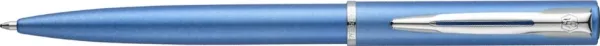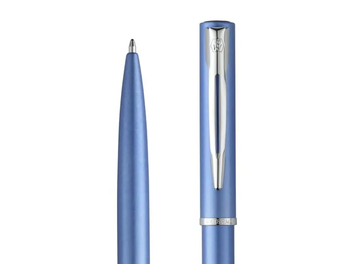 Very modern and elegant ballpoint at an excellent price. The pen is covered with a tasteful blue varnish. The clip and ring are made of stainless steel and covered with shiny chrome. It has a push mechanism for ejecting the cartridge (we press the entire tip)