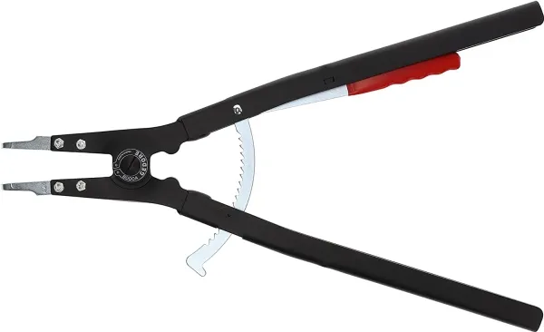 90° angled tips. Tips and lock lever zinc-plated. Lever handle-end red dip-insulated. Finger protection. Reinforced safety arms. Precision machined, oil hardened and annealed. E-8000 A = pair of spare tips.