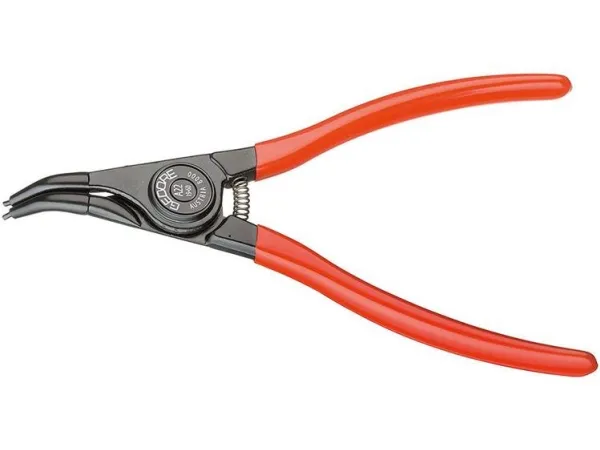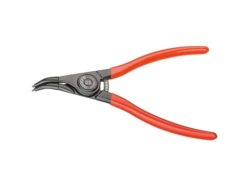 Similar to DIN 5254 Form B. 45 ° angled tips. With opening spring. With clamping protection. Forged Gedore chrome-vanadium special hardened and tempered steel. Precision machined, oil hardened and annealed. Black, with red dipped handles.