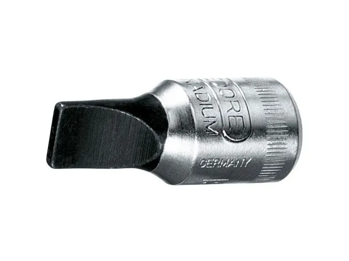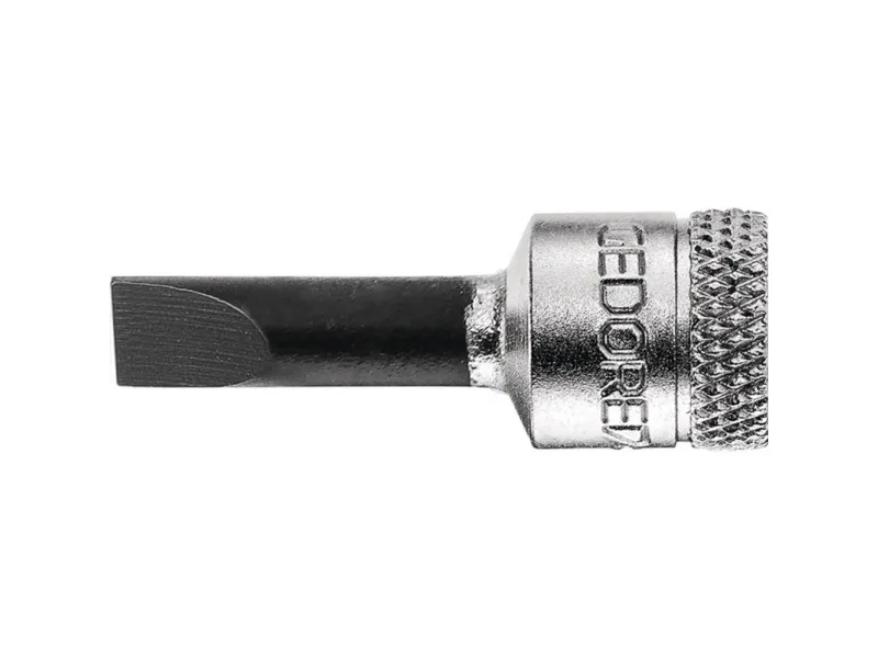 Square drive as per DIN 3120 - C 6.3, ISO 1174, with ball retaining groove. Hand-operated, knurled grip. Chrome-plated. Bit in Gedore vanadium special steel, manganese-phosphated. Bit as per DIN ISO 2380-1 Form B.