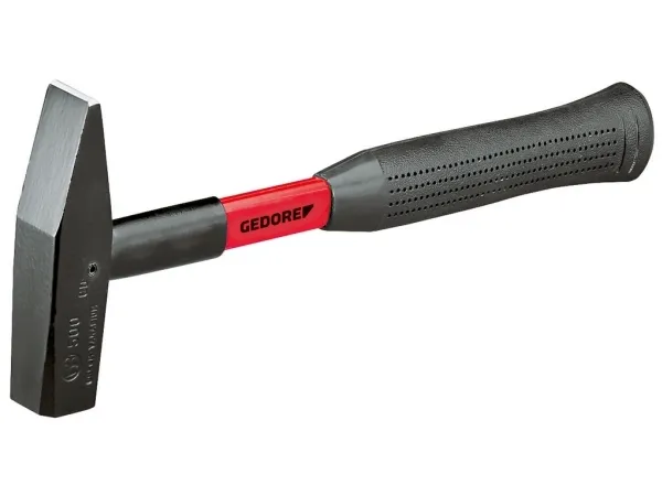 Forged hammer head. Nearly unbreakable fibreglass handle with plastic grip. Additionally hardened handle protective steel sleeve, with secured head. Induction tempered edges of the flat side of the head available on request.