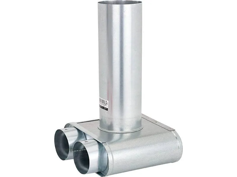 Loftspreder LVS DA 100 - 75 - 2 Loftspreder til LVS luftfordelersystemet til tilslutning af en ventil DN 100 til ind- eller udblæsning. To tilslutninger DN 75 til de fleksible luftkanaler LVS RP 75.