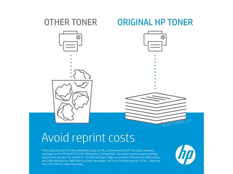 Expect professional-quality documents when you use Original HP printer supplies. Dependable performance, consistent page yields, and standout results are the norm — something the competition can’t match. With Original HP toner cartridges, you can also avoid costly reprints and help ensure the flawless performance you expect from your HP printer.