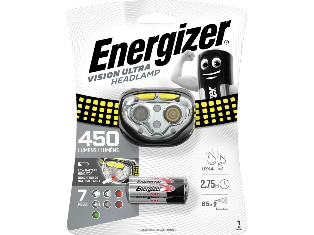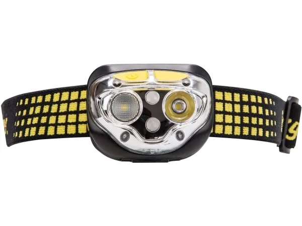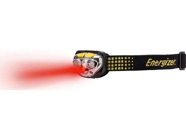 Justerbart hodebånd, værbestandig, støtbestandig, splintsikker, indikator for lavt batteri, nattvisning med rød LED, VisionGuard, green LED night vision