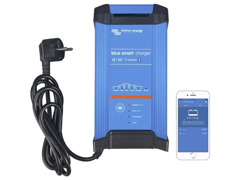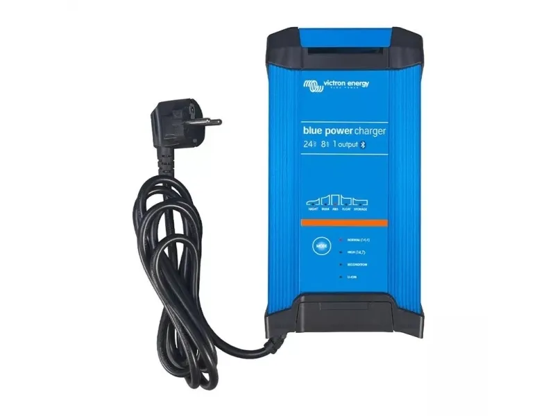 Oplader Blue Smart 24/8 Bluetooth Smart forbindelse til en smartphone eller tablet-pc · Konstant strøm-fase (bulk) med test-funktion · Konstant spændings-fase (absorption) · Strømforsyningsspændingsfase (float) · Lagerspændingsfase (storage) · Klar-funktion · Night og Low-tilstand · Mikroprocessorstyret · Adaptiv opladning · Udligningsladning · Desulfateringsfunktion · Temperaturkompensation · Batteriadministrationssystem · Spændingsføler · Kan anvendes som strømforsyning · Aluminiumkabinet · Høj kvalitet og med lang levetid · Opfylder mange standarder · LED-display · Kortslutningssikker · Overopladningsbeskyttelse · Beskyttelse mod omvendt polaritet Bluetooth Smart Blue Smart IP22 batteriopladeren er den trådløse løsning til overvågning af spænding og strøm, til justering af indstillinger og til opdatering af batteriopladeren, når nye funktioner er tilgængelige.