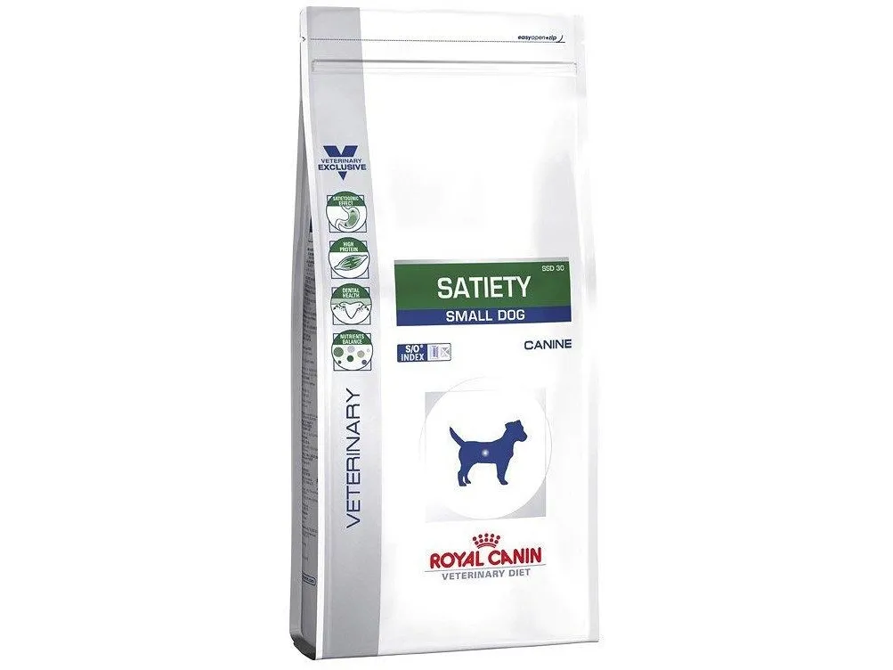 Available in 1.5 kg, 3 kg or 8 kg bags, ROYAL CANIN® Satiety Weight Management for Small Dogs is specially formulated with the nutritional needs of your overweight or obese small dog in mind. To support effective and safe weight loss, ROYAL CANIN® Satiety Weight Management for Small Dogs has an adapted macronutrient profile. Long term feeding of this diet also contributes to reducing the likelihood of your dog regaining excess weight. Thanks to its high level of natural fibres, ROYAL CANIN® Satiety Weight Management for Small Dogs helps to limit begging behaviours between meals. CANIN® Satiety Weight Management for Small Dogs’ exclusive formula is specially adapted to meet and support your small dog’s digestive, urinary and dental sensitivities. As part of the ROYAL CANIN® Veterinary Range, it is important that this product is only given to your pet when recommended by a veterinary professional and that prescribed feeding rations are accurately followed, to aid this we advise weighing out the food on digital kitchen scales. To cater to each dog’s individual preferences, ROYAL CANIN® Canine Satiety Weight Management is also available as a wet diet. If you’re considering mixed feeding, simply follow our feeding guidelines to ensure your dog gets an accurate amount of both wet and dry food for optimal benefit. It is essential to accurately follow feeding rations as prescribed by your Veterinary Practice and we recommend dividing the daily ration between 2 meals.