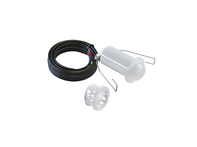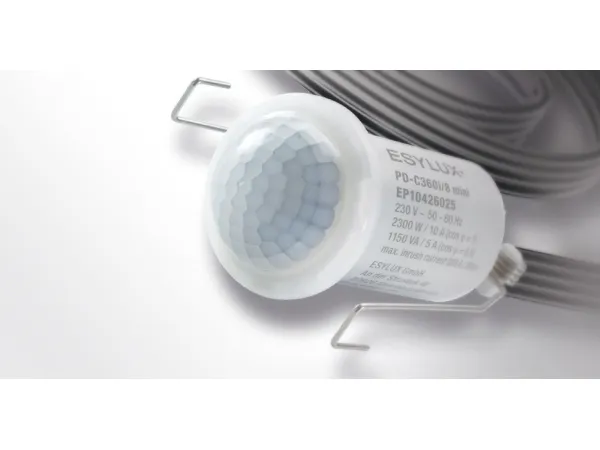 Esylux ankomstmelder PD-C360i/8 mini-3m-D 8m Mini tilstedeværelsessensor med 360° registreringsområde til loftsmontering til kobling af belysning, dermed mærkbar reduktion af energiomkostninger. Rækkevidde på op til 8 m i diameter til anvendelse i små rum, gennemgående områder, toiletter, små kontorer, gange. 16 A højtydende relæ (wolfram forløb kontakt), specielt egnet til kobling af kapacitive belastninger som for eksempel parallelkompensierte EVG'er, lysstofrør, kompakt lysstofrør, energisparepærer. Fast hinterlegtes fabrikken program til en øjeblikkelig driftsberedskab. Automatisk lysstyring afhængigt af tilstedeværelse og dagslys. Nem programmering via fjernbetjening. Lille, kompakt størrelse til indbygning hulmål på kun 25 mm diameter. Faste tilslutningsledning fra 300 cm længde. Nye universelle ESYLUX klemmeteknik til hurtig montering i sænkede lofter, lamper, indbygningsdåser, skabe og så videre.. Som loftsmontering i sænkede, lukkede lofter med medfølgende fjeder parenteser eller klemmering. Ekstra tasteindgang. Detektorerne kan som fuld- eller halv automat bruges. Udvidelse af registreringsområdet med tilslutning af slave-enheder. Målrettet tildækning af områder ved hjælp af den medfølgende linsemaske.