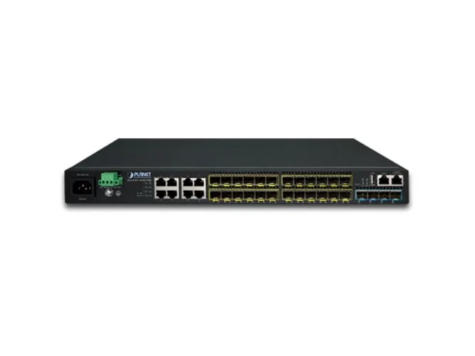 PLANET SGS-6341-16S8C4XR is a Layer 3 Stackable Managed Gigabit Switch that provides high-density performance, Layer 3 static routing, RIP (Routing Information Protocol) and OSPF (Open Shortest Path First) with 10Gbps uplink and multiple SFP fiber interfaces delivered in a rugged, strong case. The administrator can flexibly choose the suitable SFP/SFP+ transceiver according to the transmission distance or the transmission speed required to extend the 10G network efficiently. Besides, with 128Gbps switching fabric, the SGS-6341-16S8C4XR can handle extremely large amounts of data in a secure topology linking to backbone or high capacity servers for ISP and enterprise VoIP, video streaming, and multicast applications.