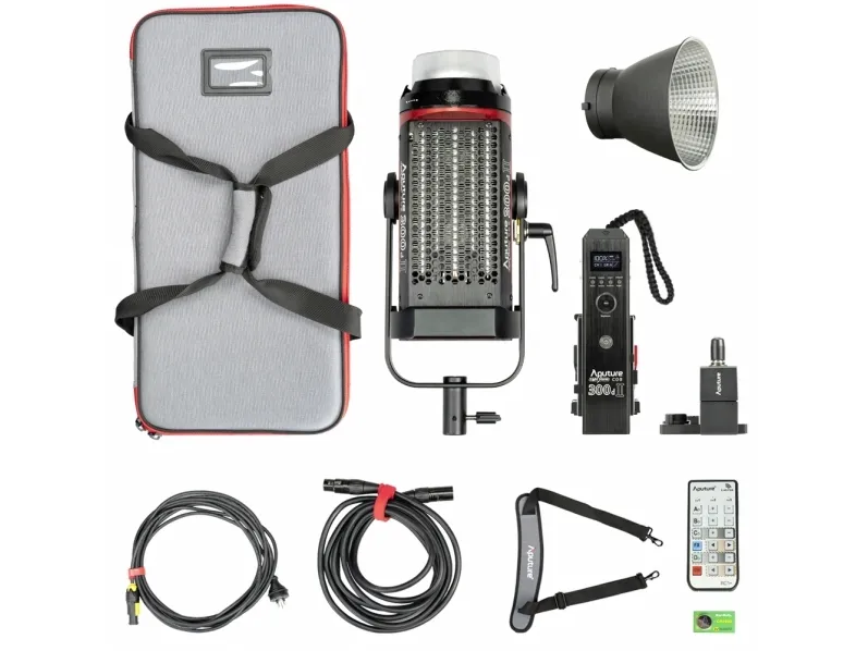 1 x lampehode 1 x strømadapter 1 x RF-fjernkontroll 1 x battery adapter plate (V-mount) 1 x control box 1 x bærepose