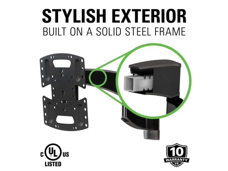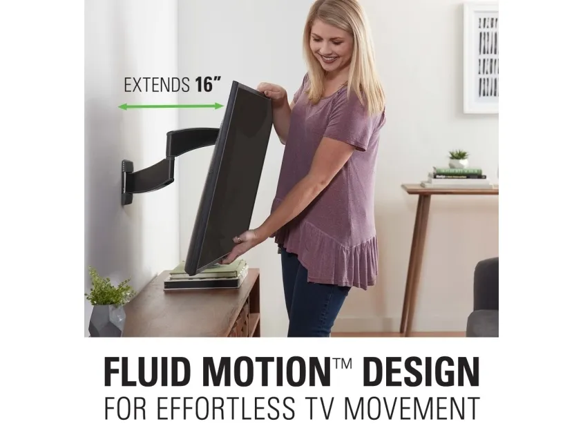 The Sanus Premium Series VSF716 is a mounting kit designed to provide support for LCD TVs ranging from 19 to 43 inches. Featuring FluidMotion design, this kit ensures adjustments for optimal viewing angles, whether tilting, swiveling, or rolling. Crafted from durable stainless steel, the mount secures your television while complementing modern décor with its brushed finish. Integrated cable management keeps your installation organized, enhancing your living space's aesthetic. With a maximum load weight of 15.88 kg, the mount suits various display sizes, making it a choice for any room setup. Assembly is required, allowing for a customizable setup that meets individual preferences.