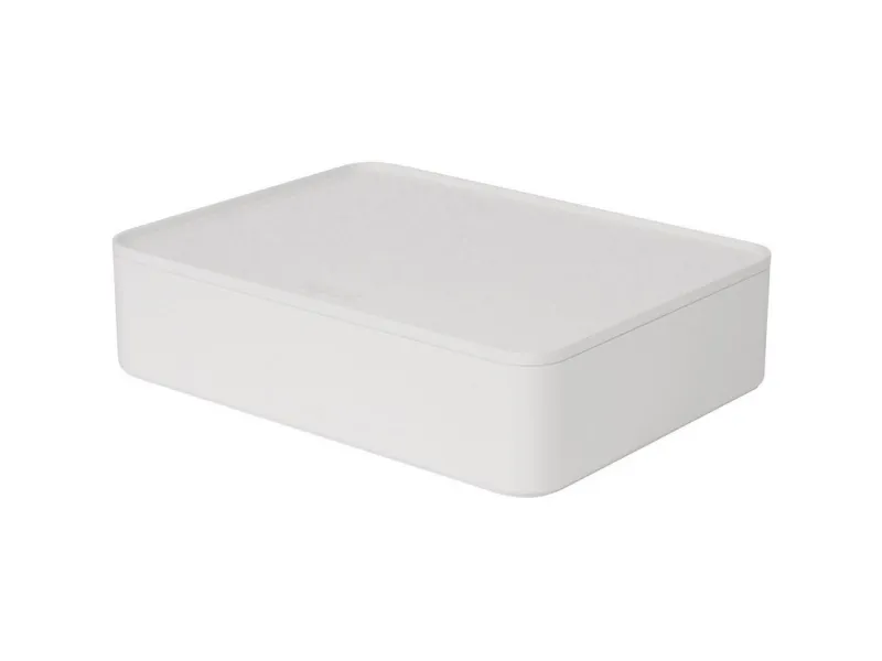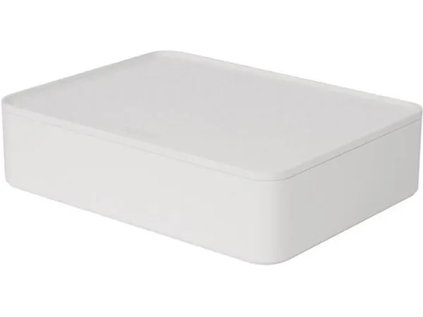 HAN Smart-organizer Allison hvid Fremstillet i Tyskland SMART-ORGANIZER ALLISON, praktisk, stabelbare sølvboks med forskydelig og aftagelig indre skål og låg i premium-kvalitet. Enestående og innovativt design i højglansudførelse til mange formål: På kontoret, på mødet eller derhjemme. Låget kan på praktisk vis også bruges som tablet, eller når det ikke bruges, opbevares under Utensiieniboksen. Skridsikker takket være møbelskånende gummifødder. Kan stables vilkårligt også med Allison-boksen.