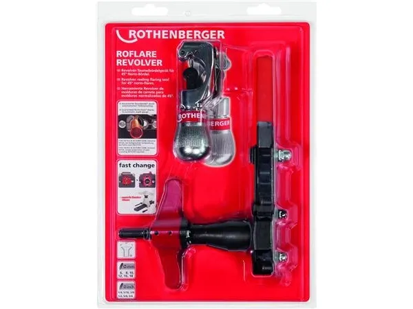 ROFLARE REVOLVER. KRAVEVÆRKTØJ I TOMME MÅL, GÅR FRA 1/4"-5/16"-3/8"-1/2"-5/8"-1/2". KRAVEVÆRKTØJET ER FYLDER MINDRE END STANDARD KRAVEVÆRKTØJER, DA DEN HAR ALLE MATRICERNE I DREJEFORM. ROFLARE REVOLVER HAR EN KONISK DORN, DER SIKRER FLOTTE KRAVER HVER GAN