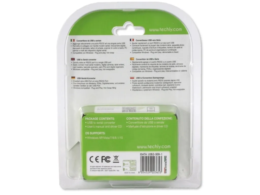 - Quickly Add an RS232 port to a single USB port\n- Easily connect serial modems, digital cameras, label printers, card readers, barcode readers, PDAs and digital organizer\n- Windows compatible - Plug and Play; hot-swappable\n- Transfer rate: up to 225 kbps\n- Powered by USB 2.0\n- Over-current protection\n- Chipset Prolific PL2303RA\n- Packaging: blister exhibition