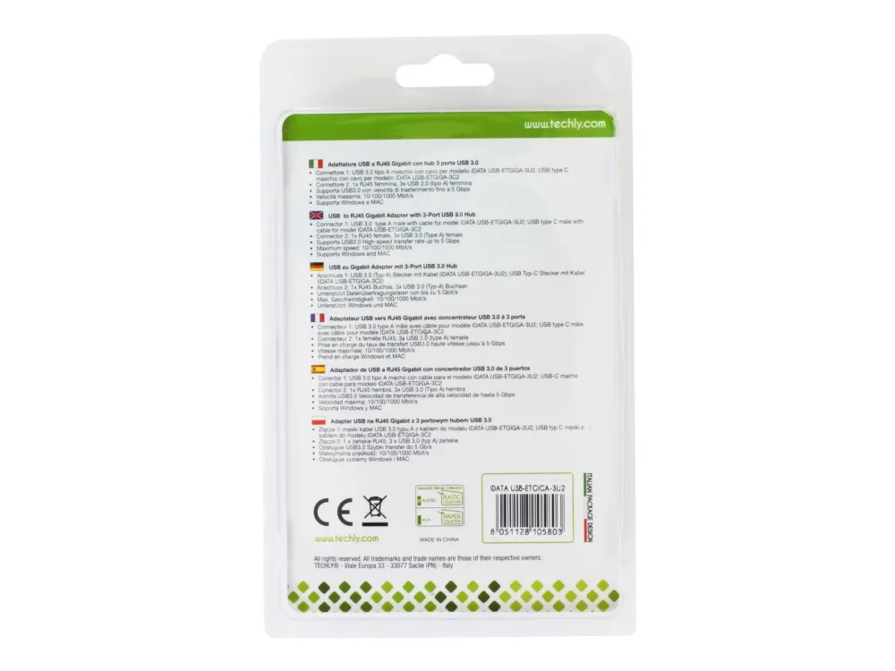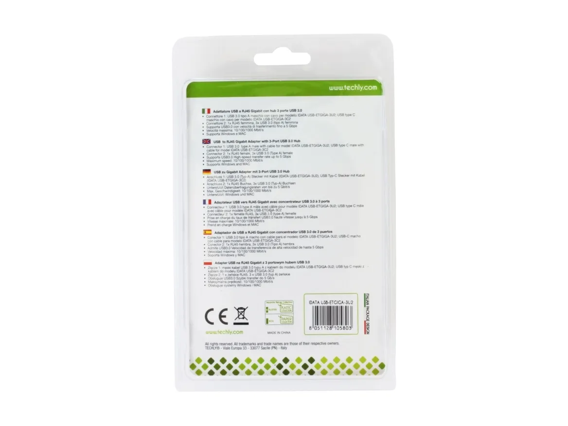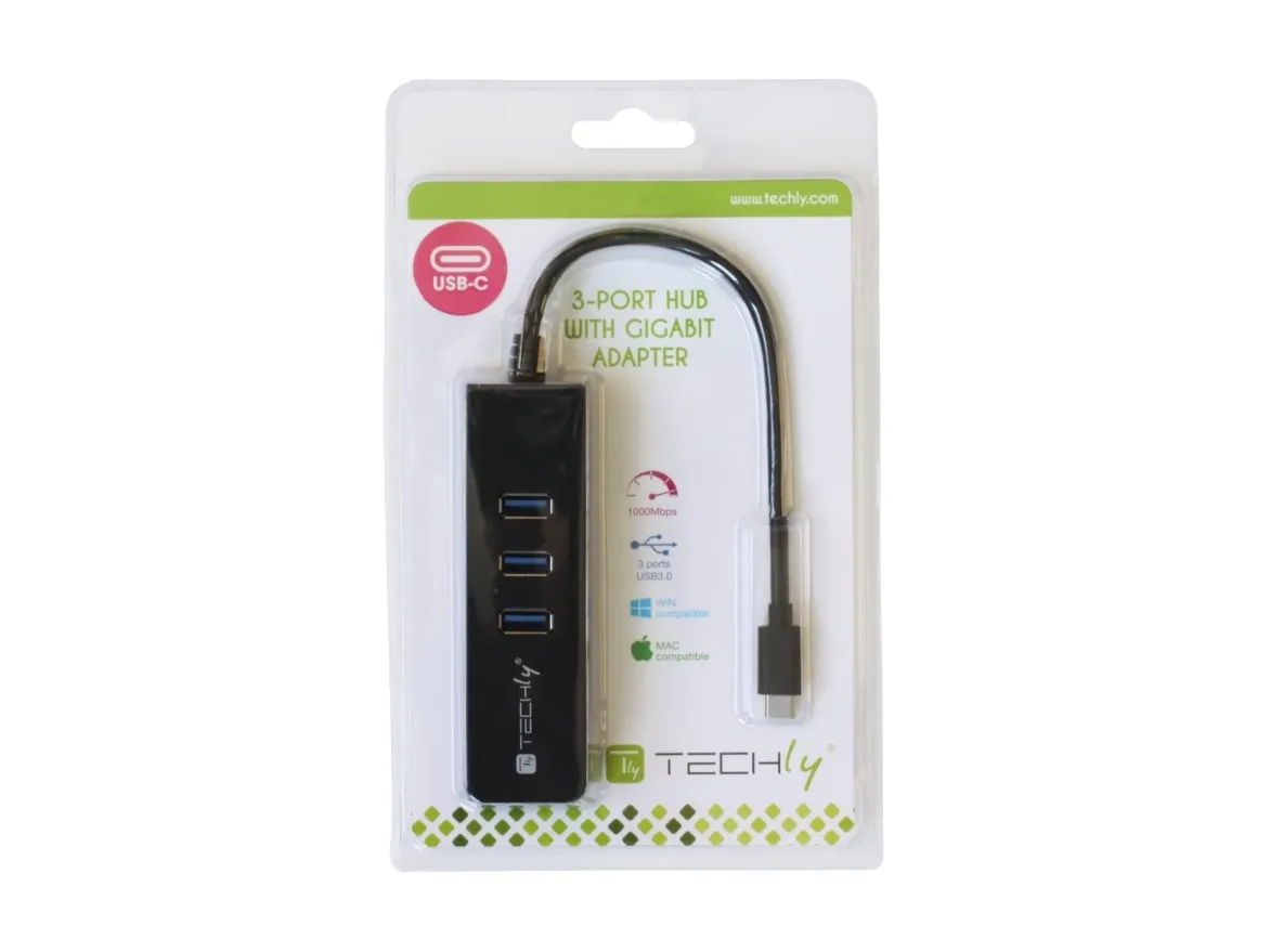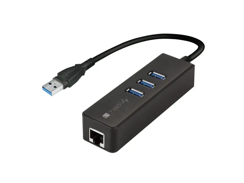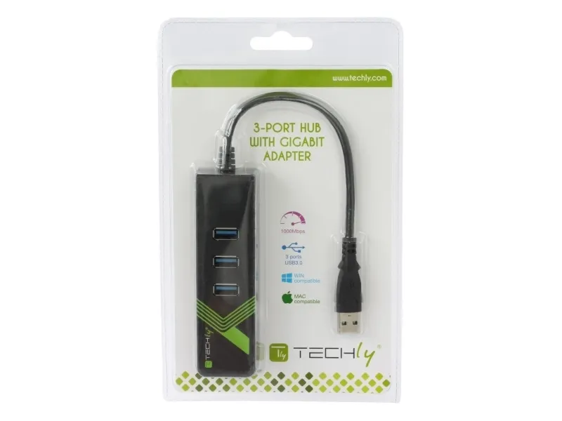 TECHly USB3.0 Gigabit Ethernet Adapter Converter with 3-Port Hub - nettverksadapter - USB 3.0 - Gigabit Ethernet x 1 + USB 3.0 x 3