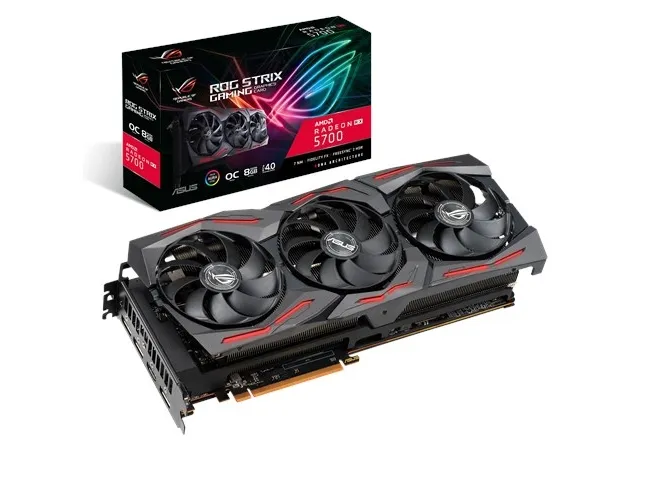 The ROG Strix Radeon™ RX 5700 OC edition 8GB GDDR6 dominates 1440p gaming.\n\nTake Flight\n1440p is the new sweet spot for mainstream gaming, and the ROG Strix Radeon™ RX 5700 packs everything needed to churn out decent frame rates in all the latest game titles. Components on the surface of the PCB are precisely soldered with Auto-Extreme Technology and the GPU chip is cooled using MaxContact and a beefy heatsink. On top, three fans leverage our new Axial-tech design, which surpasses our own industry-leading fans from the last generation. In-between those layers are a myriad of additional features designed to make the most of AMD's RDNA architecture.\n\nAxial-tech Fan Design\nBetter, faster, stronger\n\nNewly designed for the latest generation of top-end ROG graphics cards, these fans feature a smaller hub that facilitates longer blades and a barrier ring to increase downward air pressure.\n\nAuto-Extreme Technology\nPrecision automated manufacturing\n\nAuto-Extreme Technology is an automated manufacturing process that sets new standards in the industry by allowing all soldering to be completed in a single pass. This reduces thermal strain on components and avoids the use of harsh cleaning chemicals, resulting in less environmental impact, lower manufacturing power consumption, and a more reliable product overall.\n\nAura Sync\nOutshine the competition\n\nThe ROG Strix RX 5700 features Aura RGB lighting on both the shroud and backplate. Get Aura Sync software to connect your compatible products for a completely customized gaming setup. You can sync to music, change color based on temperature, or select from a large number of patterns and static options, so make sure to look out for the Aura Sync logo when you're picking parts for your build.\n\nGPU Tweak II\nMonitor, tweak, and tune\n\nThe ASUS GPU Tweak II utility takes graphics card tuning to the next level. It allows you to tweak critical parameters including GPU core clocks, memory frequency, and voltage settings, with the option to monitor everything in real-time through a customizable on-screen display. Advanced fan control is also included along with many more features to help you get the most out of your graphics card.\n\nRadeon Anti-Lag\nWhen every frame counts and every click matters, AMD Radeon Anti-Lag is the ultimate tool and a must-have feature for gamers and competitive eSports players. Radeon Anti-Lag works by minimizing the amount of time between a gamer pressing a key or moving the mouse and having that response show up on the screen.