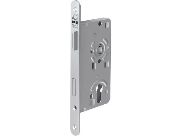 Einsteck-Zimmerturschloss Tilfælde/bolt metal BASI stiklås ES 929 til indgangsdøre / værelsesdøre. Stiklåsen har en skiftefunktion og er i TGL-mål (tidligere DDR). ideal til anvendelse af indgangsdøre / værelsesdøre, som skal være udstyret med en lukkecylinder. Dornmål 55 mm, afstand: 72 mm, firkant: 8 mm
