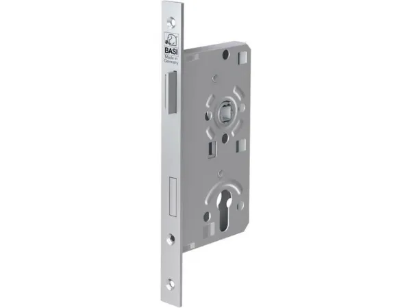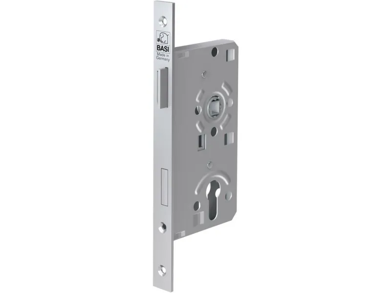 Einsteck-Zimmerturschloss Tilfælde/bolt metal BASI stiklås - ES 932 - ideal til indendørs brug. Den stiklås med profilcylinder-huller egner sig til indbygning ved stumpe indgangs- og værelsesdøre. Låsen har en kantet strop med 20 mm bredde. Fælden er i metal - fås til din højre samt din venstre døre.
