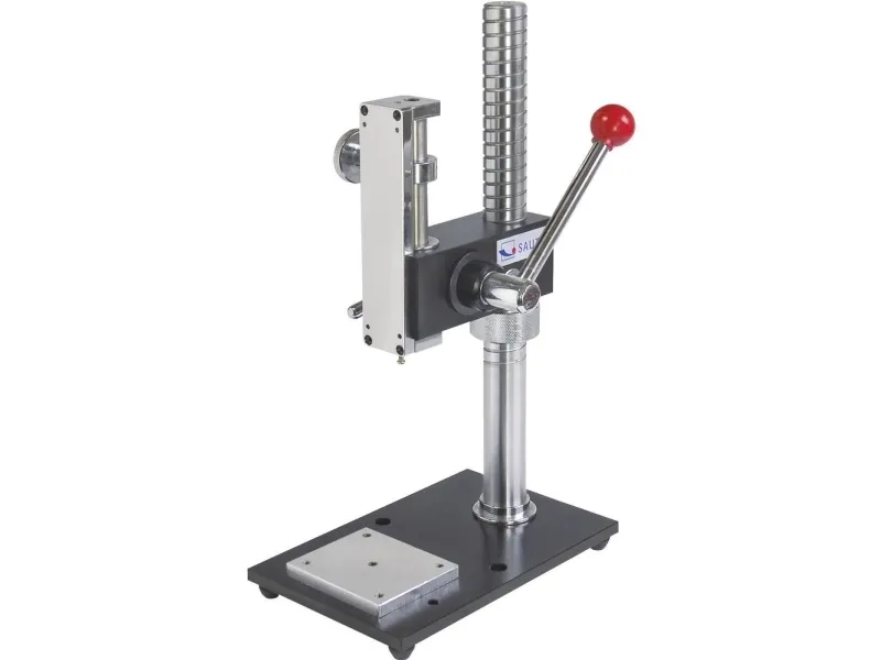 Manuel prøvestation TVP med næsten move Til vertikal afstandsmålinger med en drejning. Max. Schlittenhub: 78 mm · Min. Udgang høj slæde: 115 mm · Max. Slæde højde: 318 mm · Mål: (L x B x H) 233 x 150 x 420 mm · Vægt: 10,5 kg · Max. Kraft 500 N.