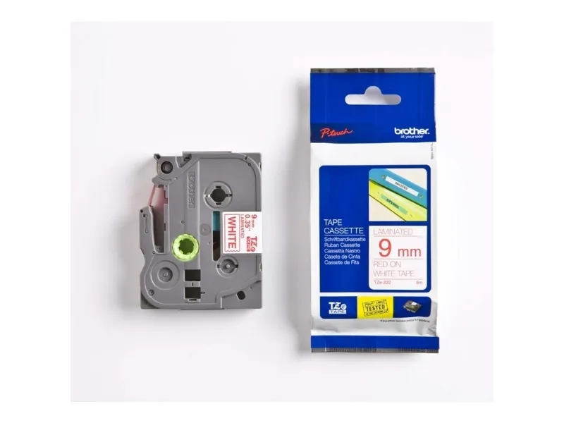 Brother TZe-222 - Rødt på hvitt - Rull (0,9 cm x 8 m) 1 kassett(er) laminert teip - for Brother PT-D210, D600, H110, P750, P950; P-Touch Cube PT-P300; P-Touch Cube Pro PT-P910