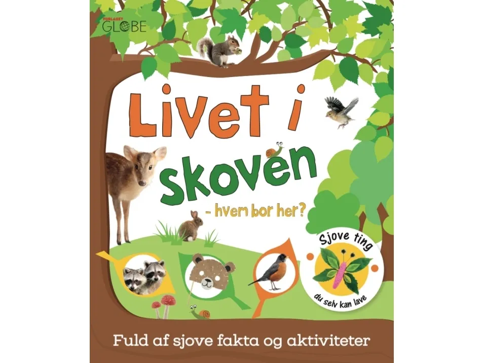 Hvis du kan lide at gå en tur i skoven, så er ”Livet i skoven – hvem bor her?” lige en bog for dig. Her kan du læse om skovens træer og nogle af de dyr, der lever i skoven. Du kan møde hoppende kaniner, skøre spætter og lynhurtige egern, og du kan lære at lave ugler af fyrrekogler, flotte bjørnemasker og ikke mindst lækre ispinde med bær fra skoven. Bogen er en bog fuld af spændende fakta, flotte fotos og sjove aktiviteter. Den henvender sig til børn fra 3 år og deres familier, som har lyst til at blive klogere alt, hvad der rør sig i den frodige, grønne skov, og som sammen vil være kreative og lave flotte ting.32 sider.