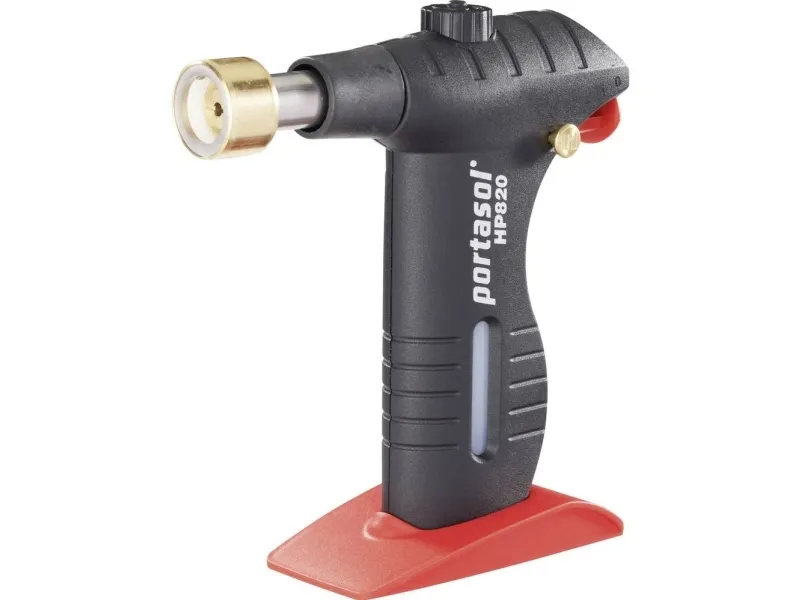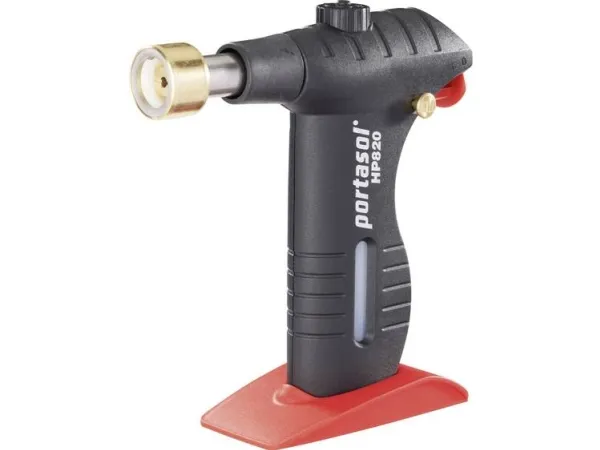 Portasol gasbrænder HP Denne højtydende gasbrænder med ergonomisk formet greb udmærker sig ved funktioner såsom: inspektionsrude til gasniveau, flammelængde op til 100 mm, udgangsåbning af svejset specialstål etc. Den kan anvendes til mange forskellige opgaver såsom: sanitetsinstallationer, løsne skruer, fjerne lak og så videre. Med niveauvindue