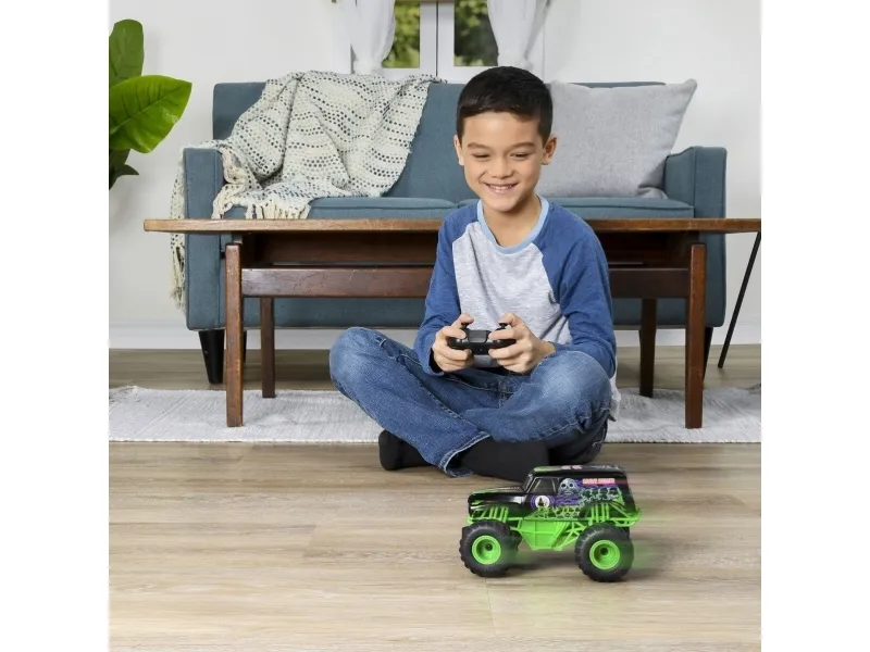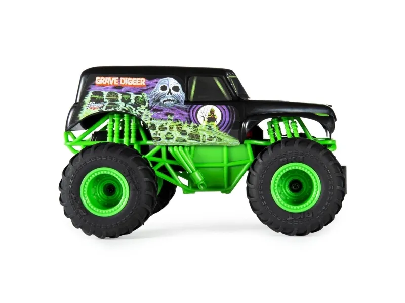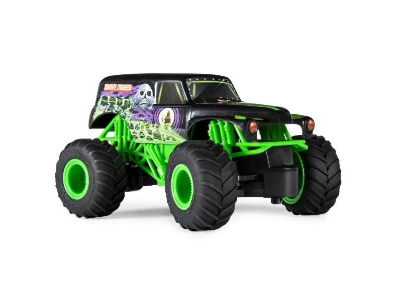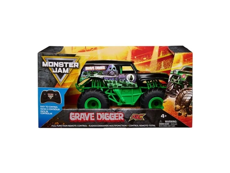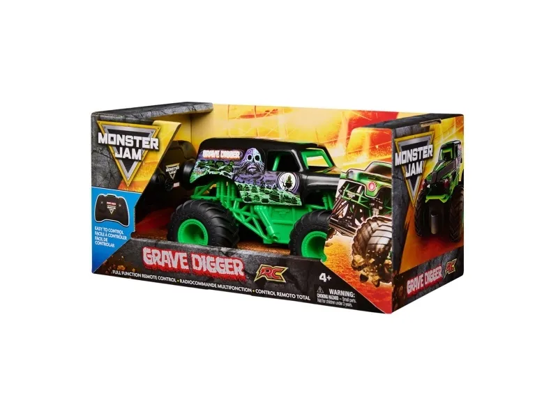 Take control of one of the most decorated Monster Jam trucks of all time! Introducing the all-new, official 1:24 scale Grave Digger RC! Dig in and drive this heavy-duty monster truck to the max to perform epic stunts, crazy crashes and brutal bashes! Featuring 2.4 GHz, you can race up to 6 Monster Jam trucks at a time! Now it’s even easier to host your very own Monster Jam rally with friends! And with a range of up to 250 ft., this 1:24 scale Grave Digger RC can dig in anywhere – make the world your very own Monster Jam arena! Authentically styled, this realistic Grave Digger remote control monster truck comes with official BKT Tires and a look-alike chassis, making sure this iconic truck always delivers big fun! Nothing will stop it from dominating the Monster Jam circuit! This Grave Digger RC is like driving the real thing! Perform high-octane stunts like big air, donuts, cyclones and more! You’ve never been this close to the Monster Jam action than with the official, all-new Monster Jam 1:24 scale Grave Digger RC!