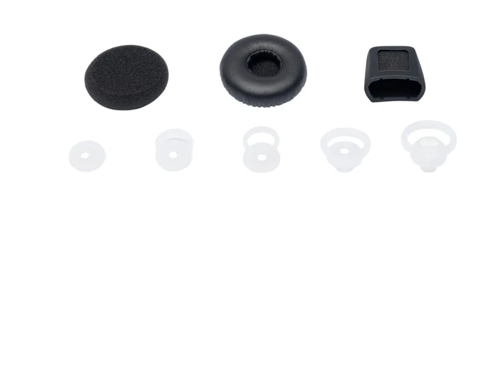 The BlueParrott C300-XT Refresher Kit includes a replacement foam ear cushion (1), leatherette ear cushion (1), ear gel kit (5) and a microphone windscreen.