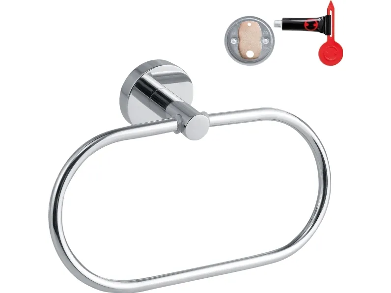 tesa® SMOOZ håndklædeholderring forkromet tesa® SMOOZ håndklædeholderringen sørger for afveksling. Blandt alle vægkroge og håndklædestænger er den en interessant Exot, der tiltrækker sig opmærksomhed. Det gælder især for denne håndklædering, der begejstrer med et harmonisk design, rene linjer og let blanke overflader. Et andet højdepunkt er dens funktionalitet. Håndklædering er yderst belastbar, kan fastgøres uden boring, fjernes igen og genbruges med en ny monteringsadapter (BK20). På den måde forbliver dine badeværelsesfliser altid uden problemer.