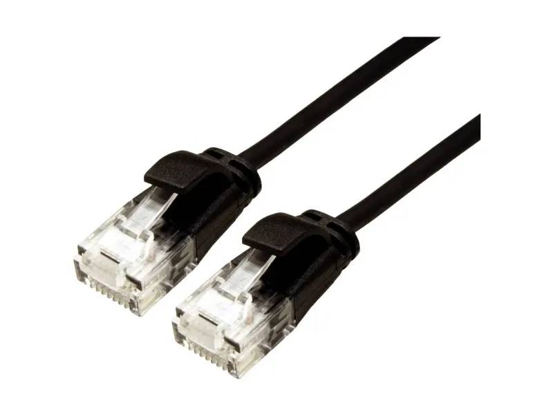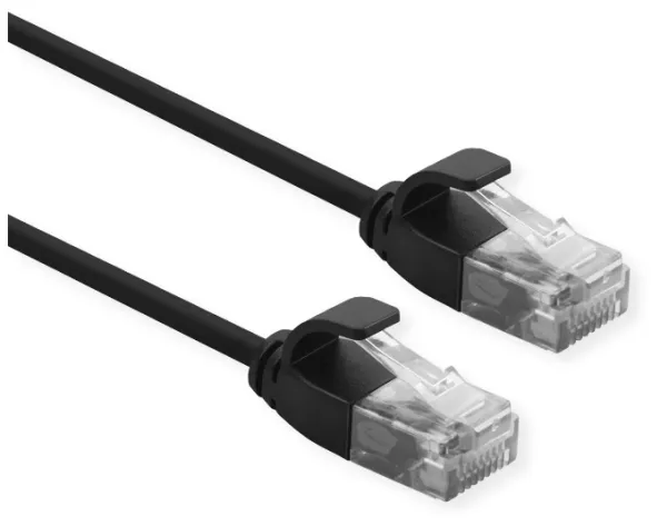 ROLINE UTP DataCenter patchkabel kat. 6-stk. (Class EA), LSOH, slim, sort, 0,15 m Konfektioneret uskærmet netværkskabel i kategori 6A med RJ-45 stik på begge sider. Egnet som rangeringskabel i patchfelter eller som tilslutningskabel til apparater og beregnet til anvendelse i LAN. Ekstra tyndt og fleksibelt netværkskabel til anvendelse i trange pladsforhold som datacentre. Konfektioneret uskærmet twisted-pair-patchkabel med RJ-45 stik på begge sider til anvendelse i 10-Gigabit-Ethernet-netværk og meget tyndt og fleksibelt kabel til anvendelse i trange pladsforhold takket være påstøbt knækbeskyttelse kontaktbelægning: Slidstærk 1:1 iht. EIA/TIA568, opbygning af 8 ledere: 8 ledere litzetråd