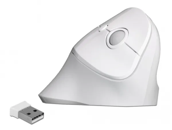 This wireless vertical mouse by Delock stands out due to its ergonomic design. The mouse will be connected to the computer via the compact USB receiver. During transport it can be placed inside a compartment at the bottom of the mouse. The 2.4 GHz wireless technology provides a maximum operating range of up to 10 meters. By pressing the DPI button the sensitivity of the mouse can be adjusted, there are three adjustable DPI levels: 800/1000/1600. Furthermore this mouse provides a detachable wrist rest, which can be attached magnetically to the mouse, if required.