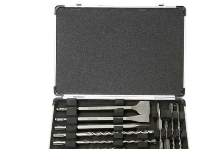 1 x punktmeisel - lengde: 250 mm Flat meisel - bredde: 20 mm - lengde: 250 mm 1 x bor - d: 6 mm - lengde: 110 mm 1 x bor - d: 8 mm - lengde: 110 mm 1 x bor - d: 6 mm - lengde: 110 mm 1 x bor - d: 6 mm - lengde: 160 mm 1 x bor - d: 10 mm - lengde: 110 mm 1 x bor - d: 8 mm - lengde: 160 mm 1 x bor - d: 10 mm - lengde: 160 mm 1 x bor - d: 12 mm - lengde: 160 mm 1 x bor - d: 14 mm - lengde: 160 mm 1 x bor - d: 16 mm - lengde: 160 mm