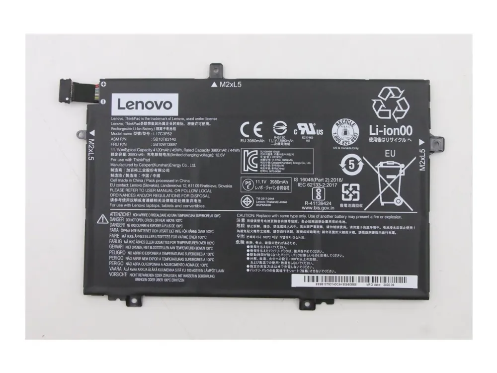 The Lenovo notebook battery is a reliable power source designed to provide consistent performance for your device. With a capacity of 4120 mAh, this 3-cell lithium-ion battery ensures extended usage time between charges. It operates at a voltage of 11.1 V, making it suitable for various Lenovo notebook models. Compliant with several international standards, including KCC, WEEE, and PSE Mark, this battery meets safety and environmental regulations. With the Lenovo notebook battery, users can expect durability and dependable energy, enabling seamless productivity without interruptions.